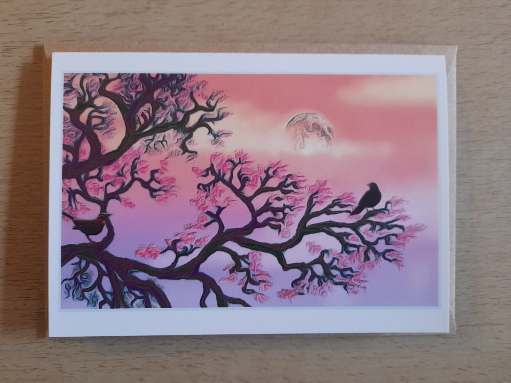 Artwork below is on an A6 sized 300gsm card with a matt finish. Blank inside for personal message. Packaged in a compostable wrapper with a rustic Kraft envelope