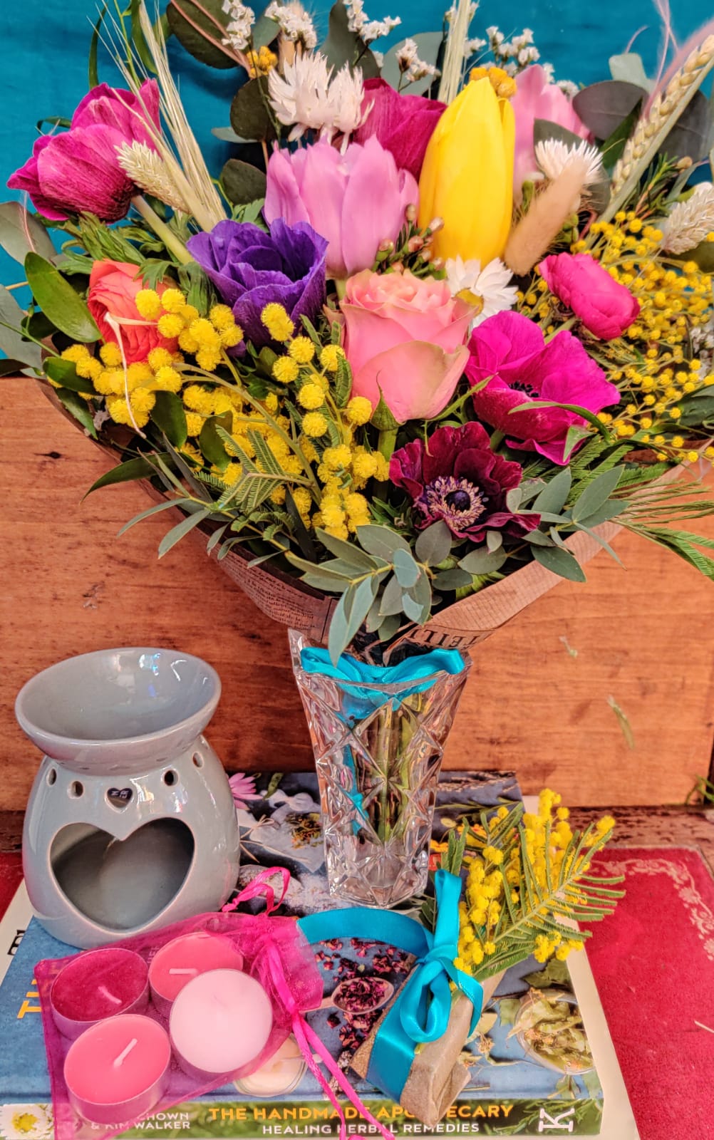 If you want to add any extra gifts to compliment the flowers then please visit “Vera’s Healing Shop” for a wonderful range of essential oils, aromatherapies, home made teas, candles, soaps, Bath/massage oils and much much more.