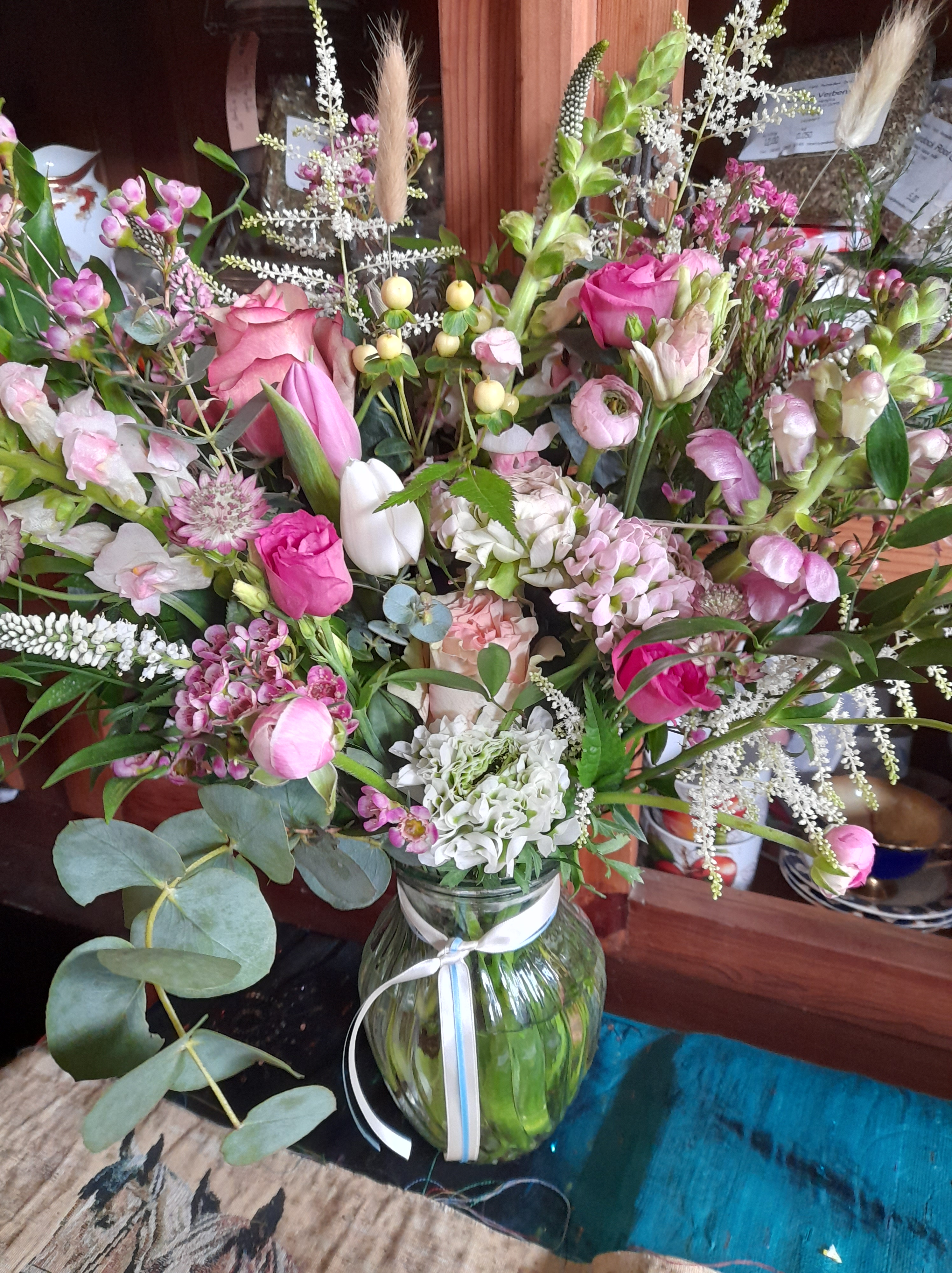 Vera’s Healing love-filled Bouquets start at £25. All are bespoke to order based upon your specific flower story (more story, more depth) and requests can be made for colours, shapes and some specifics if they are available. All these options as well as a selection of cards are easy to find on our online order form link. If you want to add any extra gifts to compliment the flowers then please visit “Vera’s Healing Shop” for a wonderful range of essential oils, aromatherapies, home made teas, candles, soaps, bath/massage oils and much much more. All can be gift wrapped if required; have a browse and feel free to ask us questions.