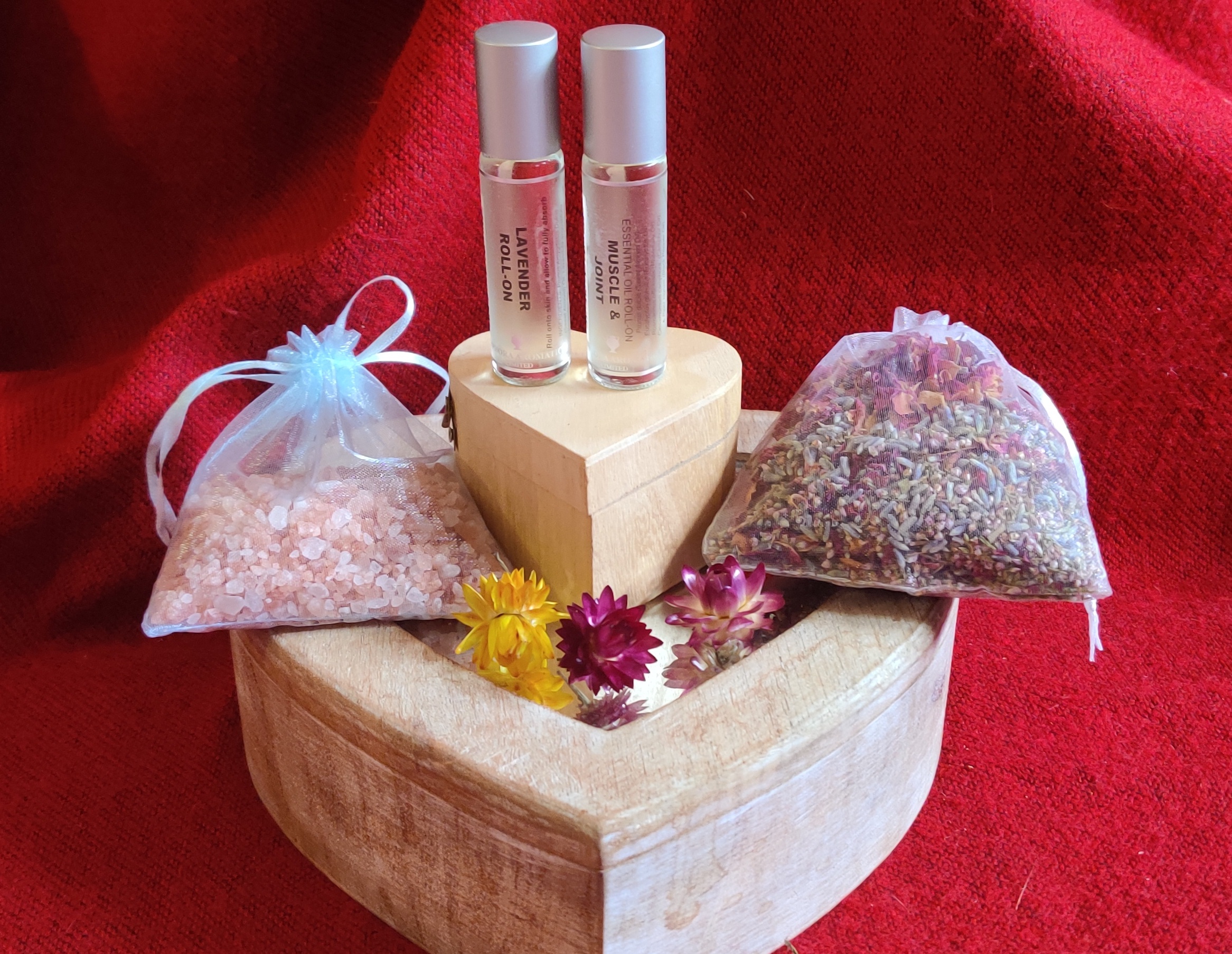 All of our healing/ gift packs have flowers as the starting place, the core of it all, and then you have natural products and treasures of the heart, to add some extra flower magic.