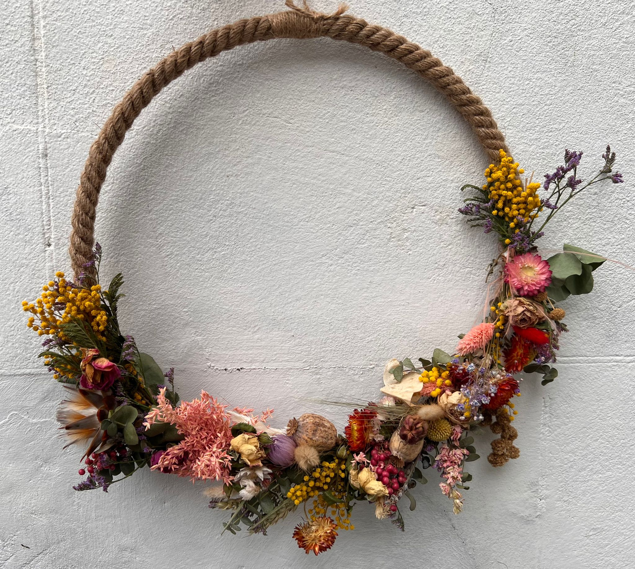 Under a full moon, you will create a hoop with mainly dried flowers, a few fresh, and foliage. Your creation will represent the moon, we will talk about the meaning of the flowers we use and about the moon.